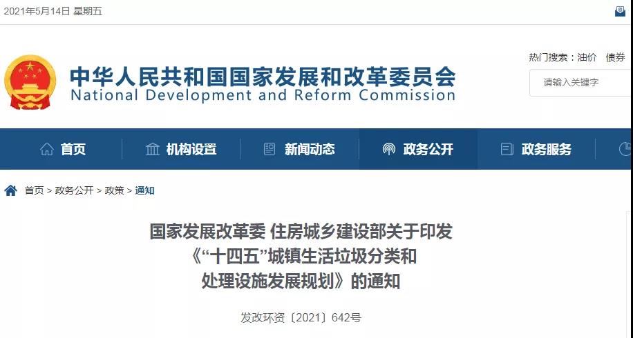 国家发展改革委、住房城乡建设部日前发布《“十四五”城镇生活垃圾分类和处理设施发展规划》提出,到2025年底...